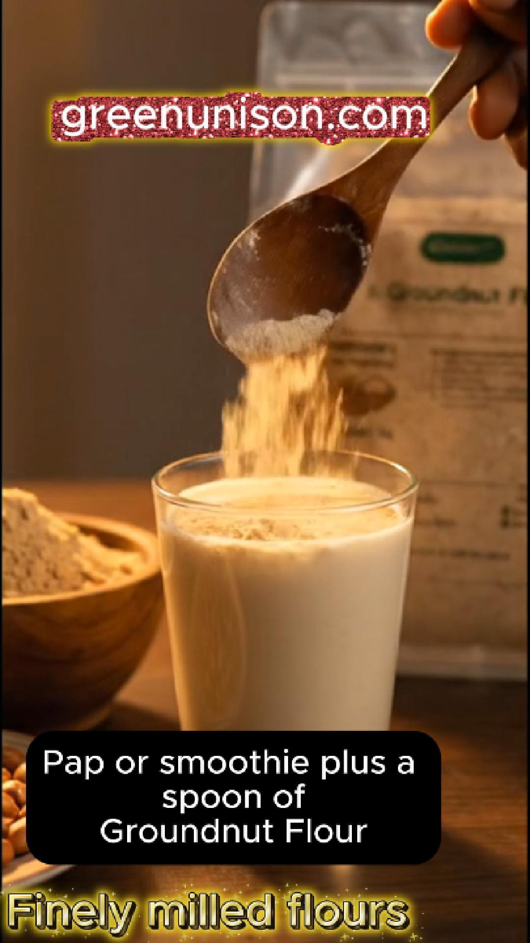 - Groundnut flour – a concentrated way to add plant protein, healthy fats and flavour to simple meals like pap, soups and smoothies.