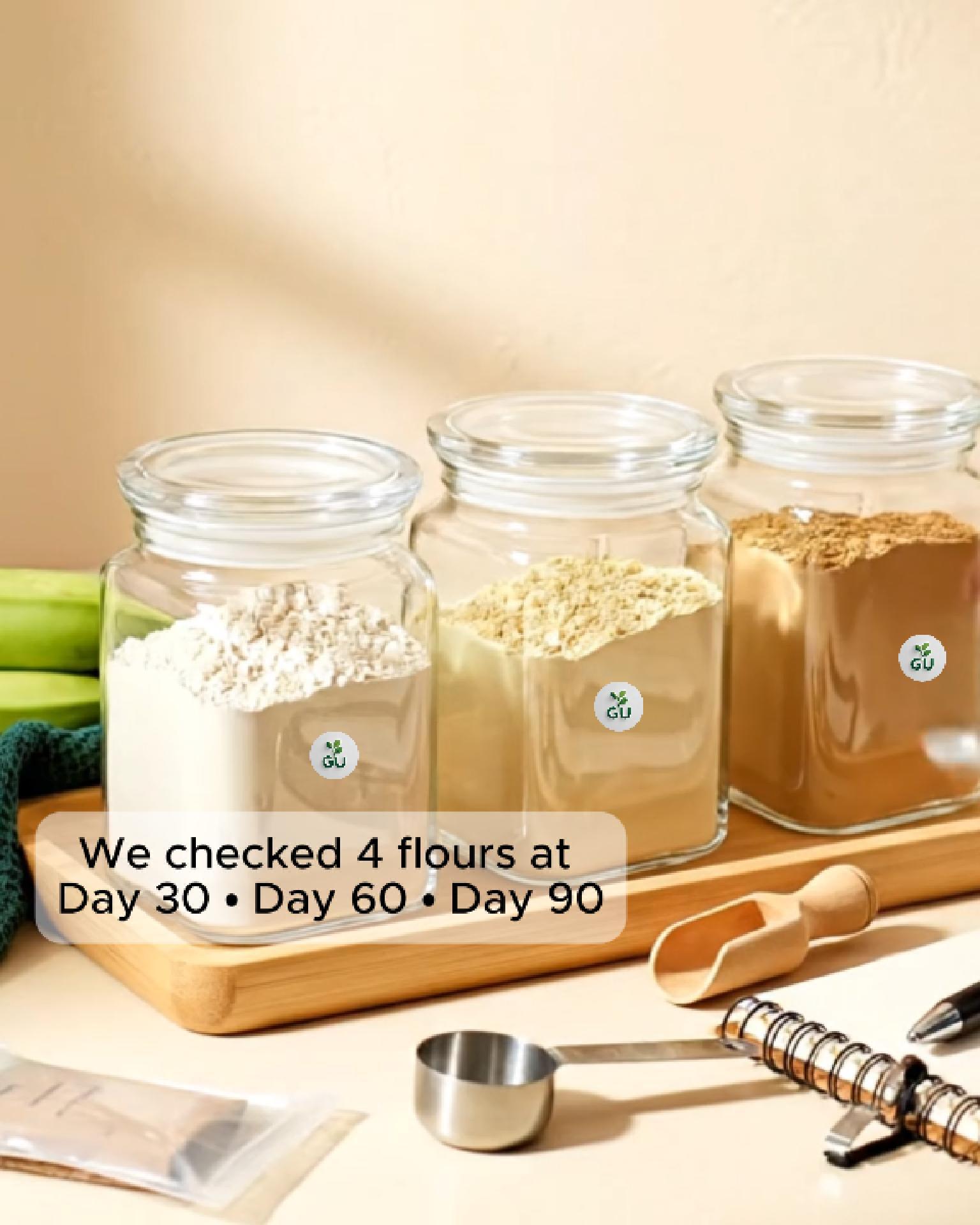 From our micro-batch experiment and general food science, here’s a quick rundown of how long these flours typically stay fresh and what affects that: